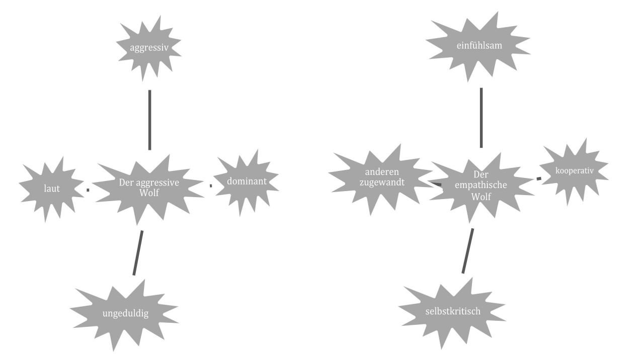 Die Geschichte einer älteren Führungskraft im Gespräch mit einem jungen Kollegen veranschaulicht die Entstehung stabiler ressourcenorientierter Netzwerke: Ein junger Kollege fragt die ältere, sehr erfolgreiche Führungskraft: „Wie ist es Ihnen gelungen, über so viele Jahre so erfolgreich die Abteilung und ihre Mitarbeiter zu führen?" Der Ältere schweigt einige Zeit und dann sagt er: „Ach wissen Sie, in jeder Führungskraft kämpfen immer zwei Wölfe. Der eine ist dominant, autoritär, aggressiv, ungeduldig und nachtragend. Der andere ist kooperativ, einfühlsam, den Menschen zugewandt und selbstkritisch." Daraufhin der junge Kollege: „Und welcher gewinnt?". Die Führungskraft: „Der Wolf, den Sie mehr füttern."